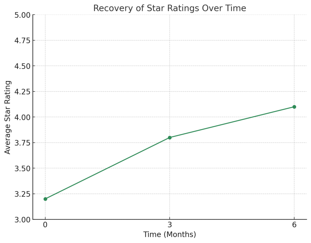 Die durchschnittliche Bewertung stieg innerhalb von sechs Monaten von 3,2 auf 4,1 Sterne.